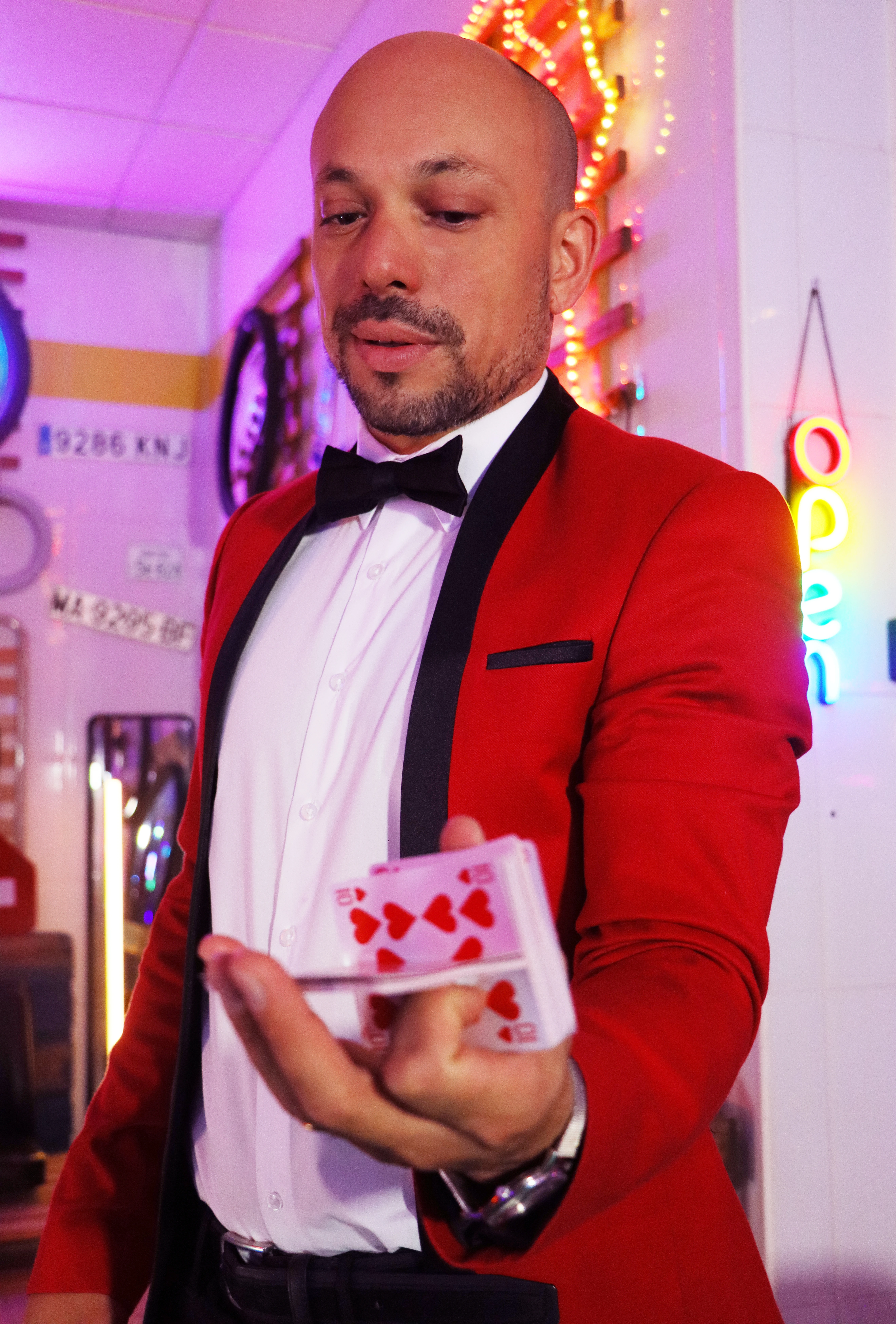 En mis shows de magia, verás una amplia variedad de trucos asombrosos, desde ilusiones ópticas cautivadoras hasta trucos de magia con cartas que desafiarán tu percepción. Combino hábilmente desapariciones, levitaciones, mentalismo y mucho más para crear una experiencia llena de misterio y emoción para todas las edades.